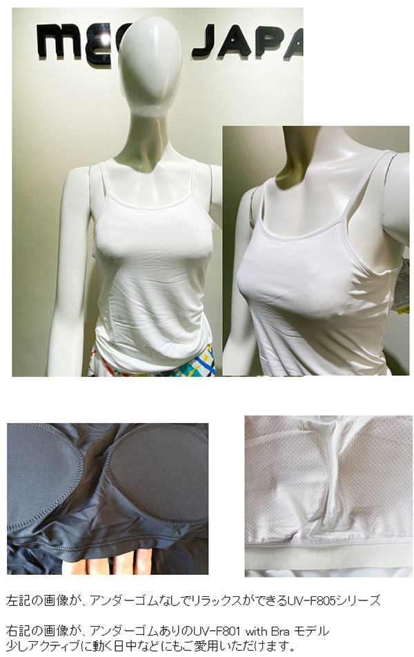 ゴムあり ブラトップ 体感温度 -3° UPF 50+ メガゴルフ 夏の雪 キャミソール ブラ付き 【UV-F801 with Bra Series】【ネコポス 対応】 [mega-wear-uvf801-bra]